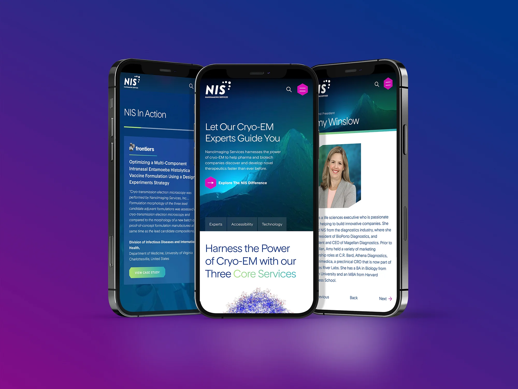 We set out to rebrand NanoImaging Services with a fresh, creative vision and to redesign their website with a sophisticated, modern look that reflects their innovative approach and industry leadership.