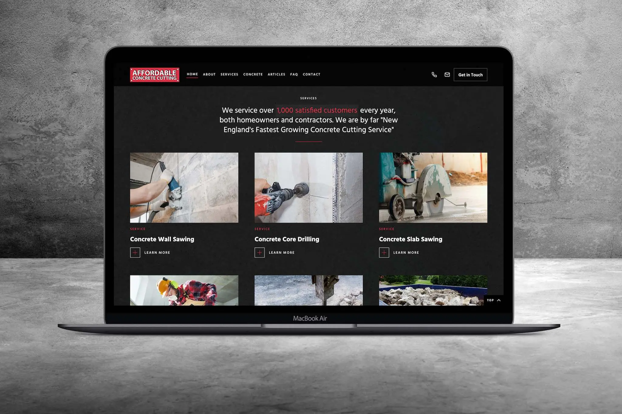 Affordable Concrete Cutting is a regional industry leader that completely drowns out any competition on the internet. Many hours and dollars were spent creating this search engine machine, and then time began to catch up. In order to keep up with the constantly changing search engine algorithms and build a foundation for future growth, Affordable Concrete knew they wanted to do this once, and do it right.