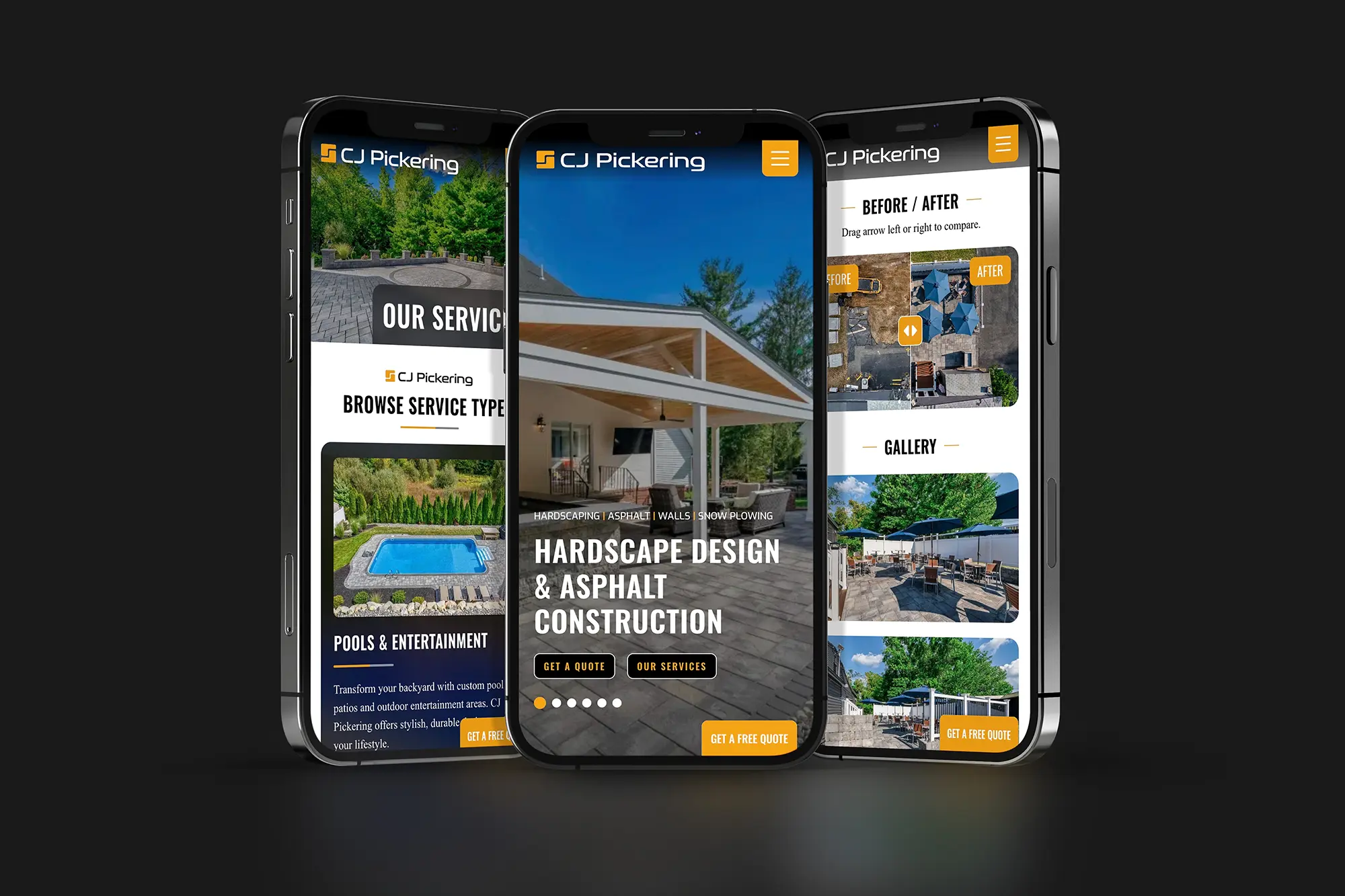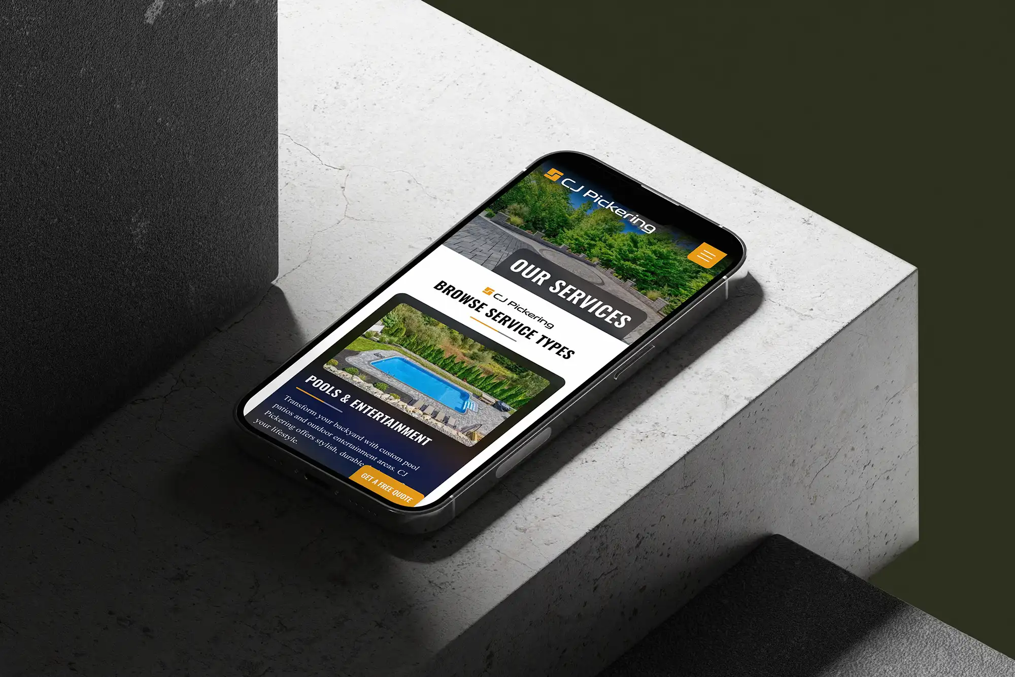 CJ Pickering crafts stunning outdoor spaces for luxury clients. Their new brand, photos, and website by Scaler transform their image and drive growth.