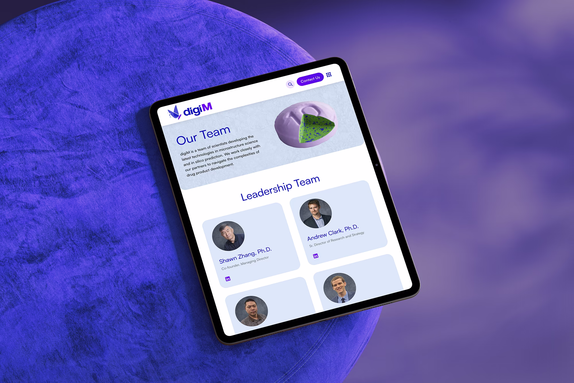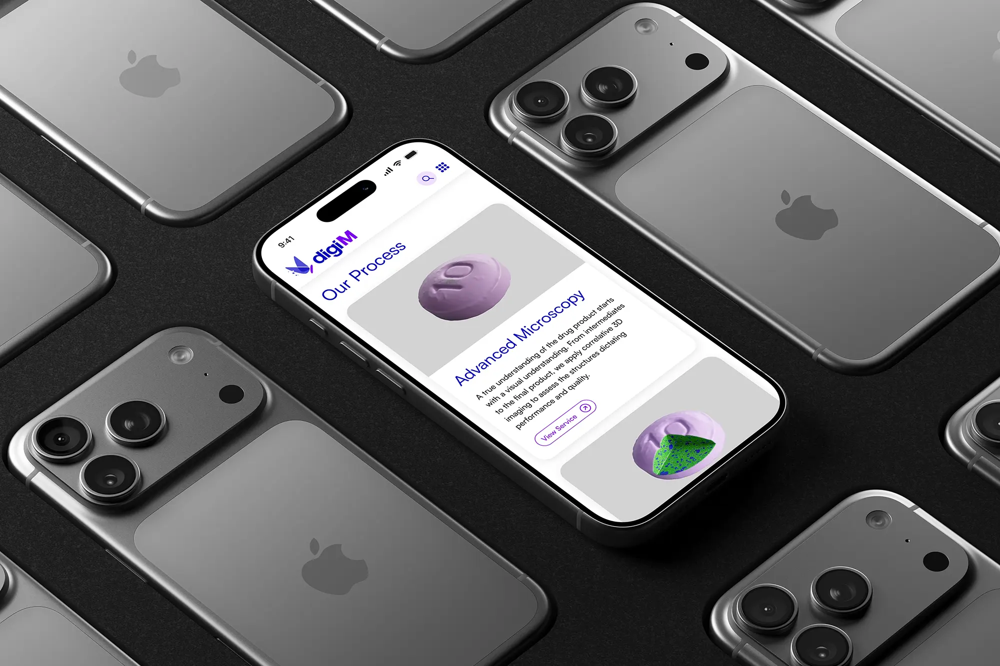 In order to modernize DigiM’s brand and focus more on the pharmaceutical industry, we proposed a complete website redesign. This would include reorganizing their services offerings for clearer navigation and adding custom renderings to visually communicate their expertise and solutions, making the site more engaging and intuitive.