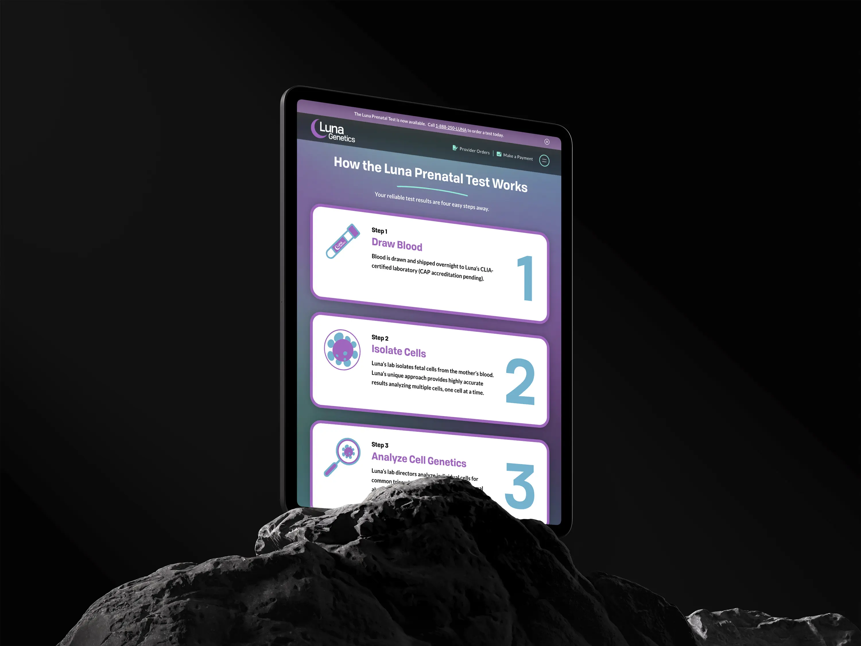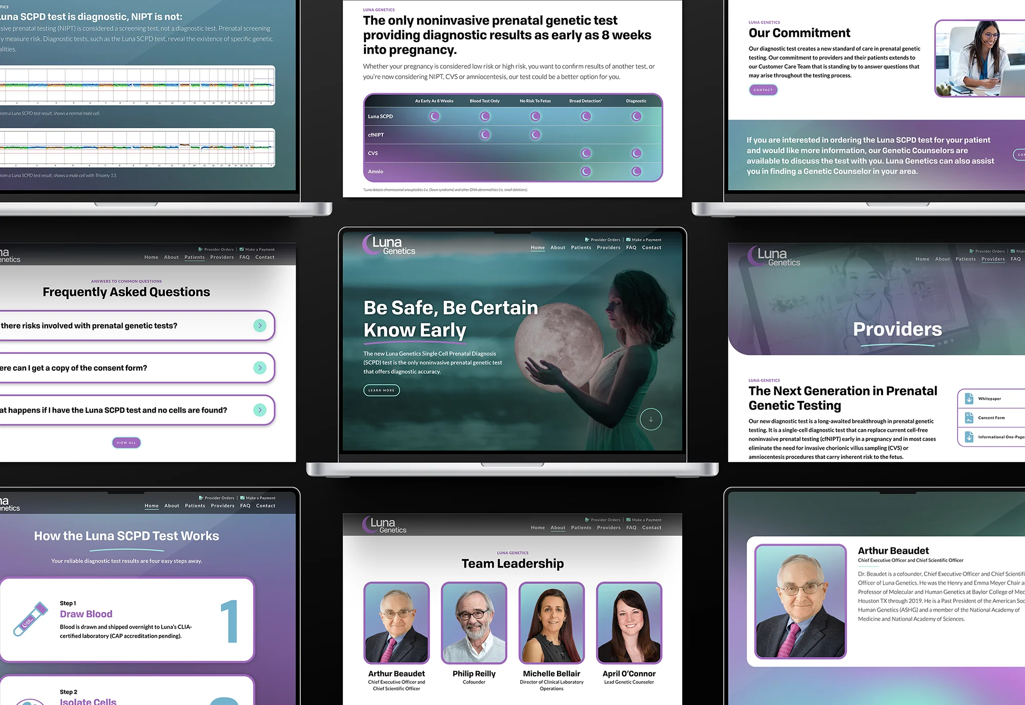 Luna Genetics developed a new way to test the genetic health of unborn babies and was ready to start taking their new product to market. Launching a pharmaceutical product requires a lot of oversite and acute attention to detail and messaging so Scaler was brought in by one of our agency partners, Greenough Agency, to handle everything design and web.