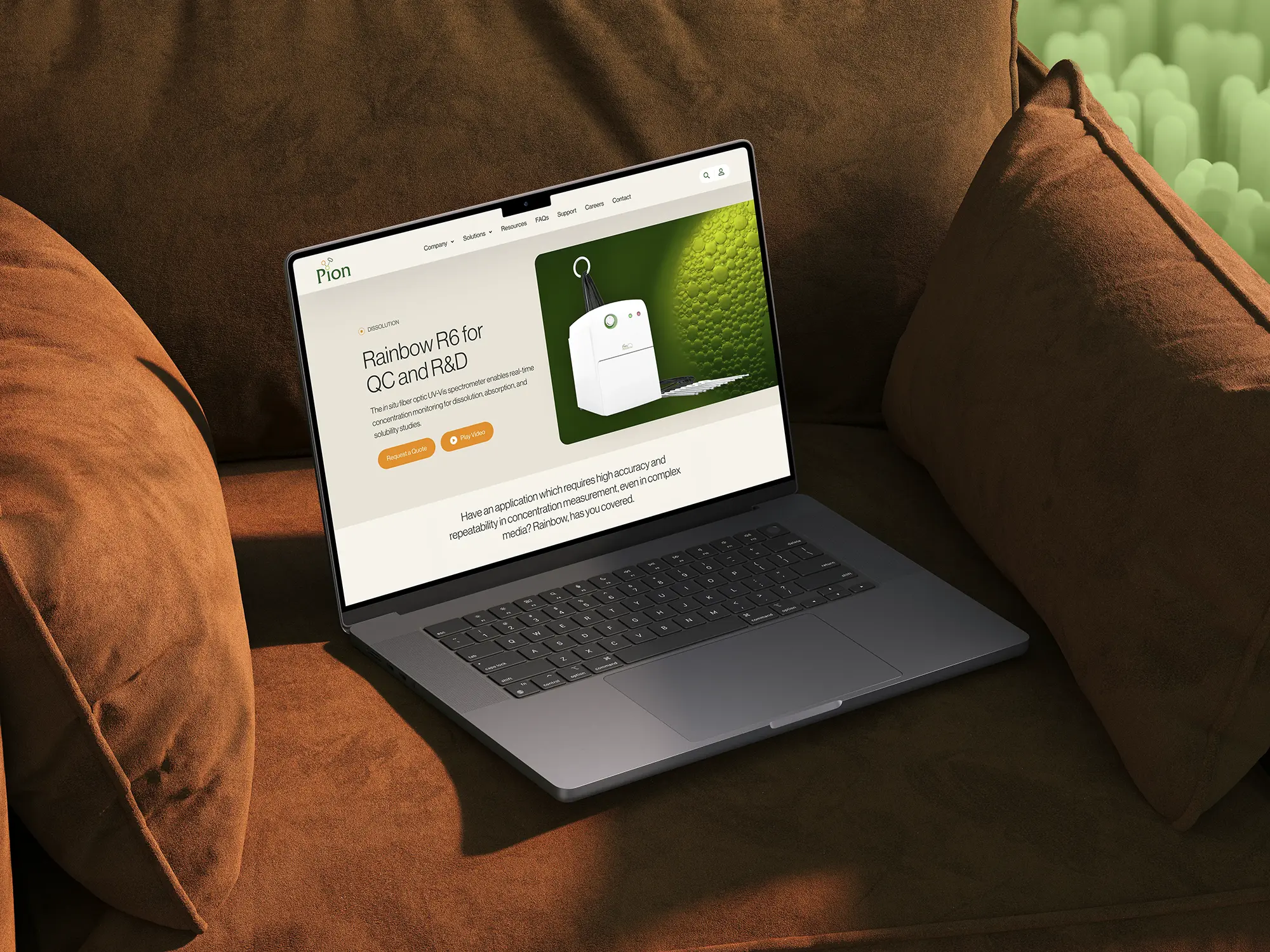 The new website was designed to be product-focused, with a clear hierarchy and stronger product pages to help users easily find what they need. A fully gated user portal was introduced to provide secure access to valuable content, and custom imagery was created to better represent Pion’s offerings and visually communicate their value.