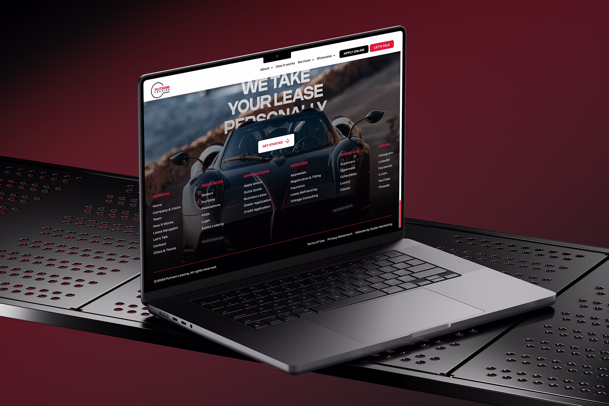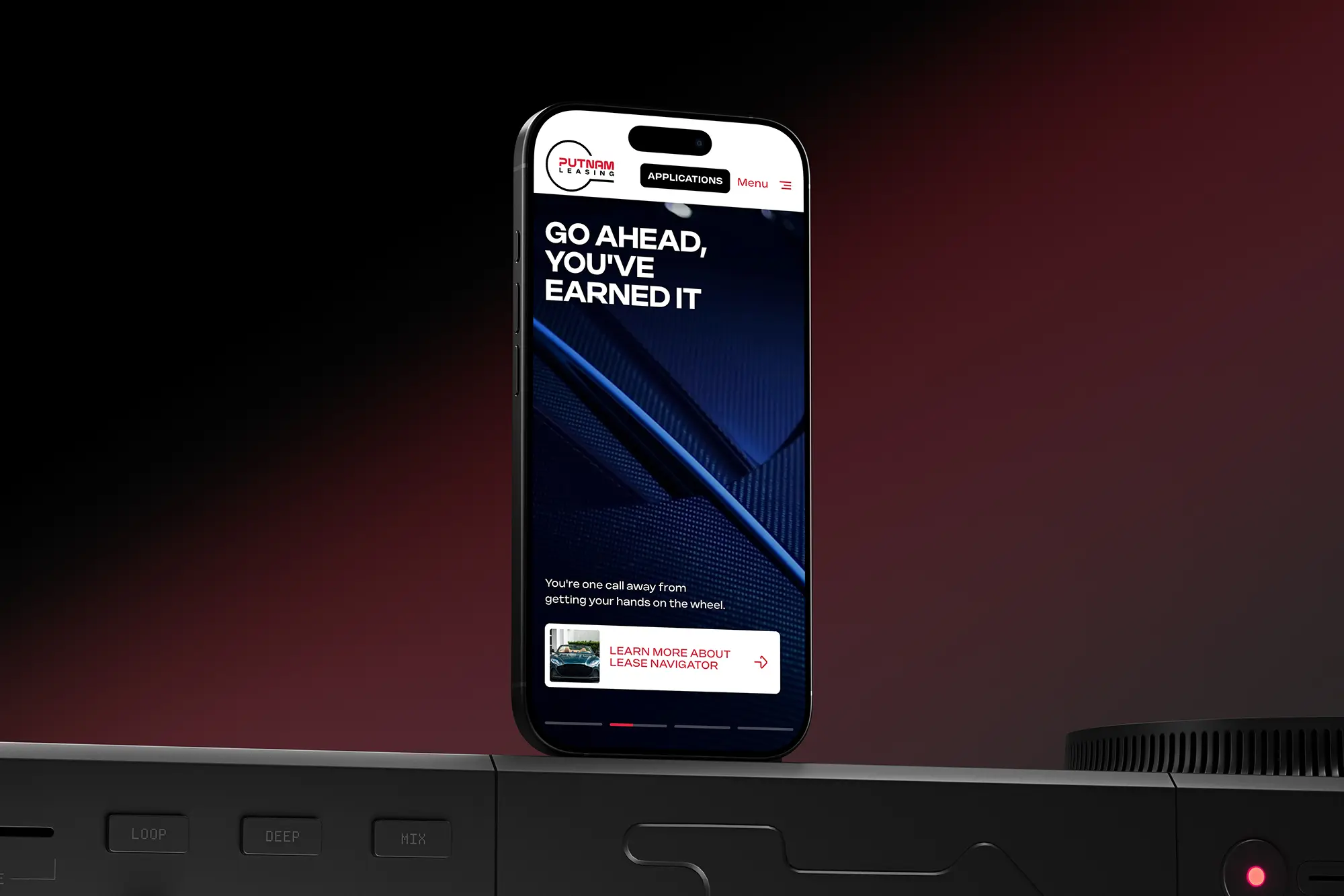 Putnam’s new brand presence fuses modern energy with timeless luxury. Bold red and black visuals capture passion and performance, while high-end photography and clean layouts speak to sophistication. The Lease Navigator experience tells a clear and compelling story, reflecting both the excitement of car culture and the trustworthiness of a premium finance partner.